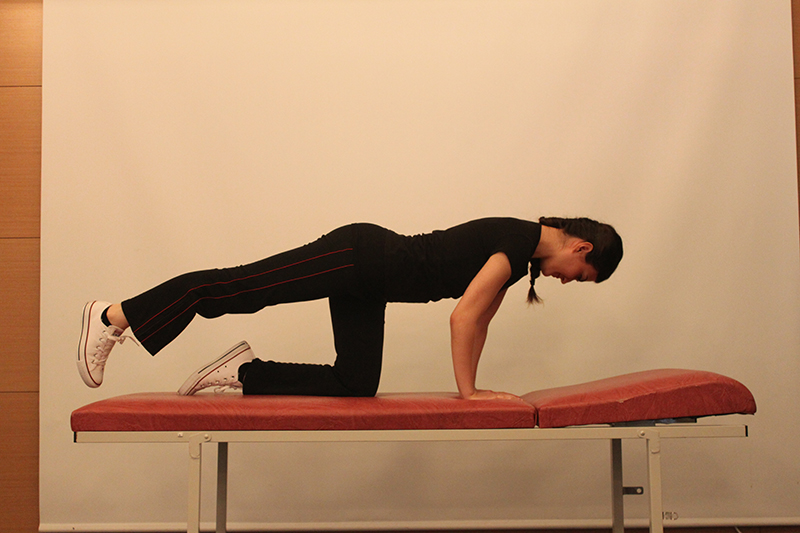 Dizleriniz ve elleriniz üzerinde yerde düz bir duruş oluşturun. Bir bacağı dizden kırmadan geriye doğru uzatın. Bacağınızı yukarı aşağı hareket ettirin. Dizinizin dümdüz olmasına özen gösterin.